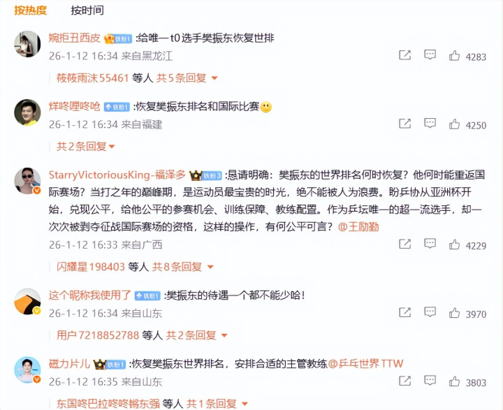 在国乒教师组名单公布之后,樊振东却不测成为了焦点。不少球迷在驳斥区发出号召,条件归附樊振东的全国排行和外洋比赛阅历。