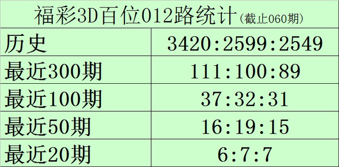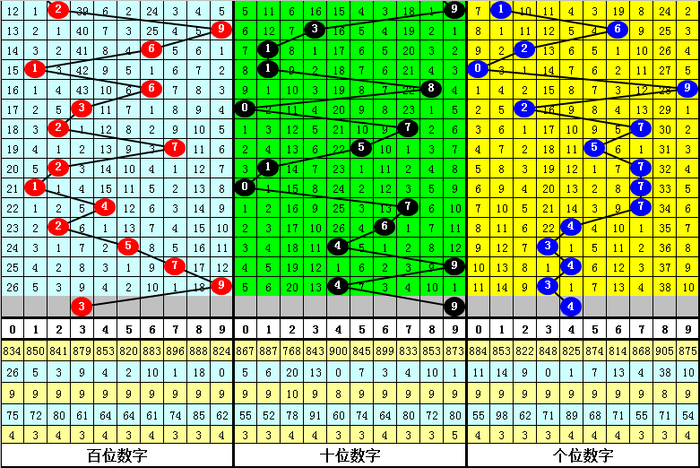 百位推选:百位最近20期号码012路比为6:7:7,当今0路号码遗漏0期,1路号码遗漏1期,2路号码遗漏2期,另外0-9号码遗漏期数区分为: