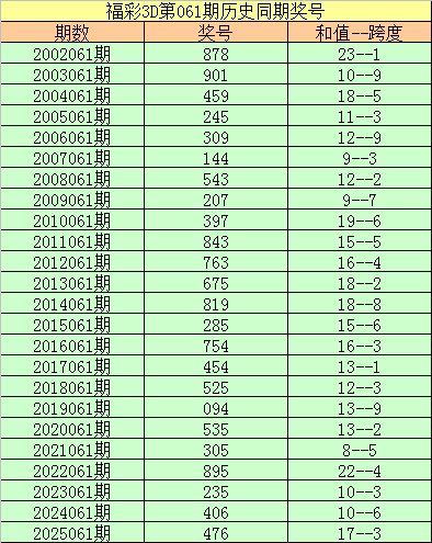 2025061期开奖号码:476
